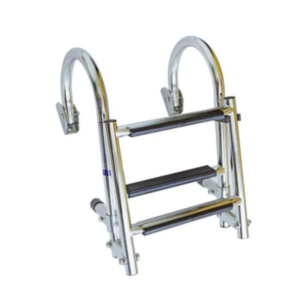 - Klappleiter aus Edelstahl 316, daher beständig gegen Salz- und Süßwasser.