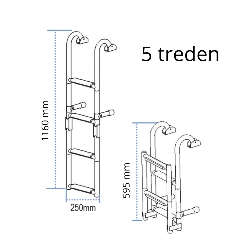 - Klappleiter aus Edelstahl 316, daher beständig gegen Salz- und Süßwasser.