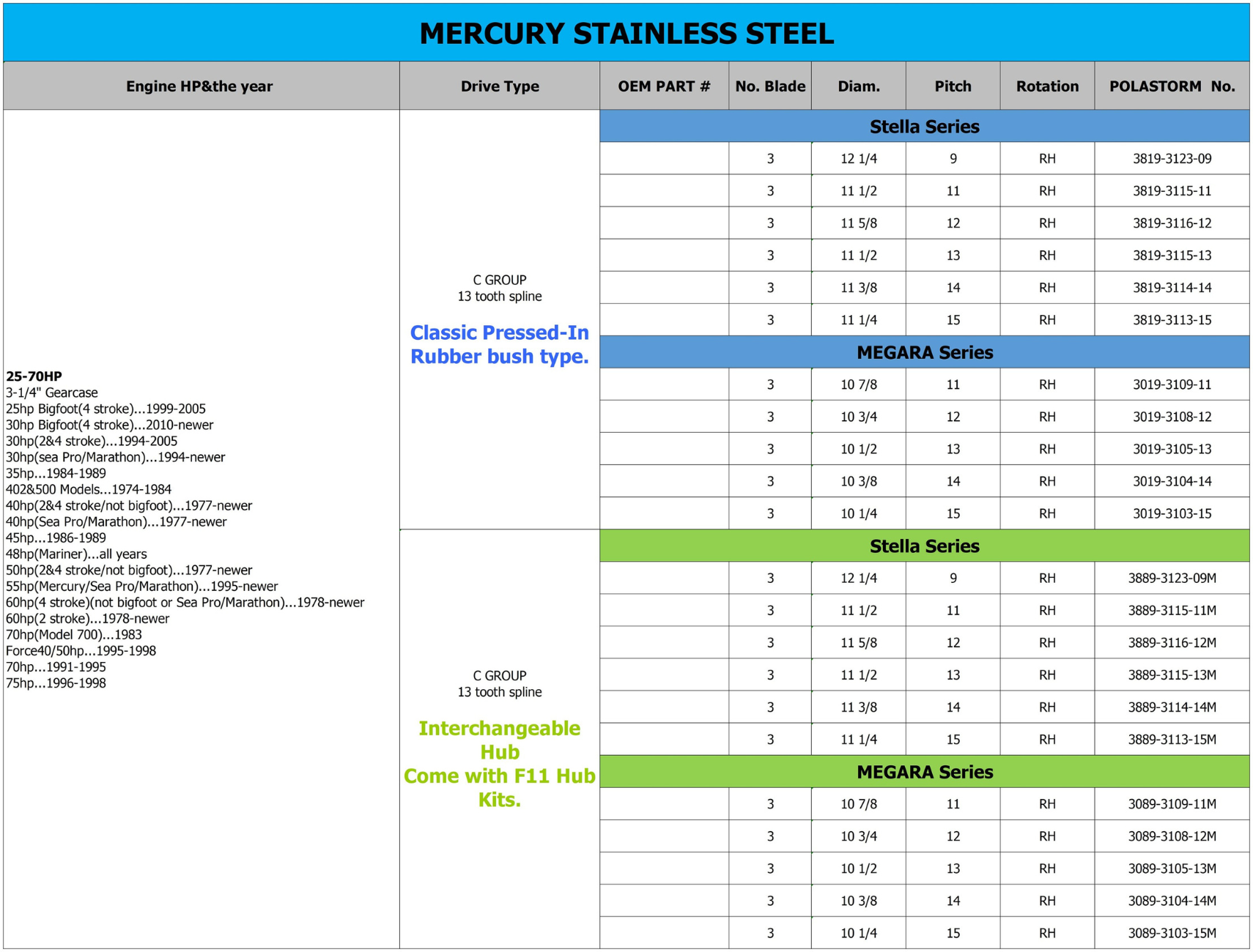 Stainless Steel Polaris Propeller for Mercury C GROUP 25-70 HP: |